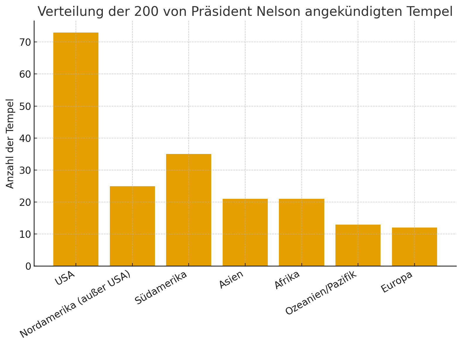 Von den 200 Tempelankündigungen Präsident Nelsons verteilen sich die Standorte wie folgt: